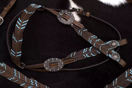 WyprzedaneKomplet Blue Feather Napierśnik+ Ogłowie