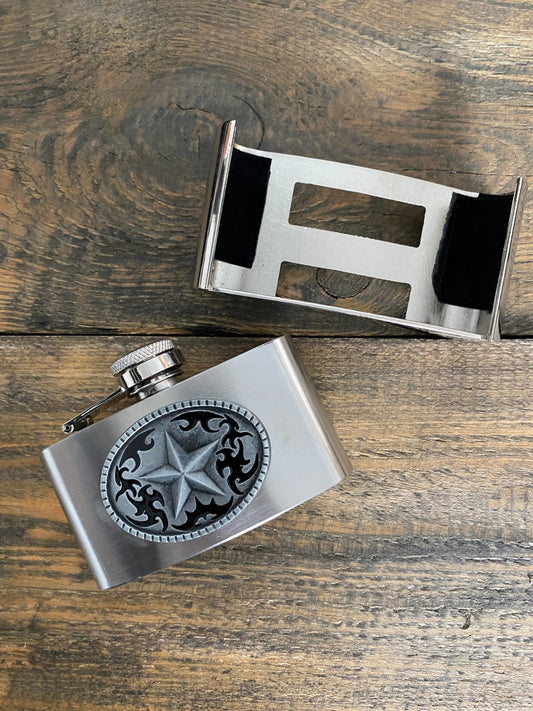 Srebrna klamra Texas Star niebiesko-czerwony wzór