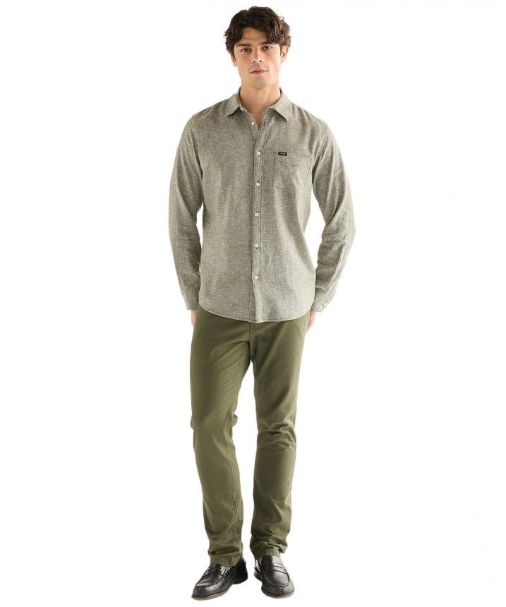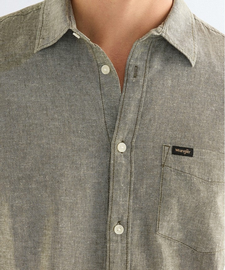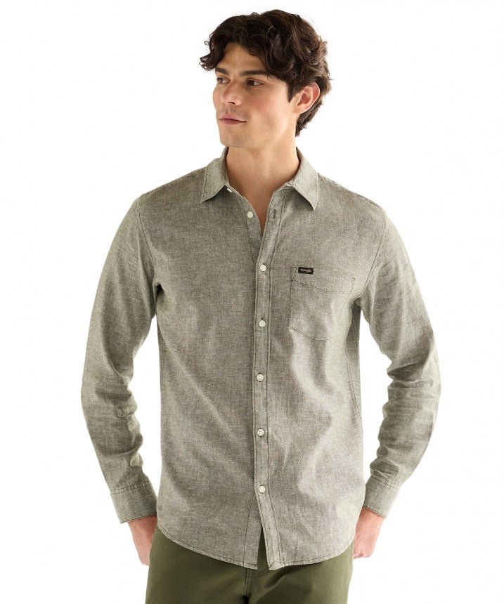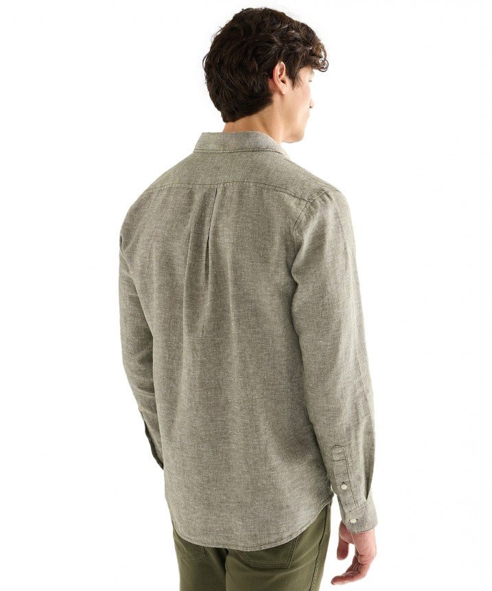 Koszula z jedną kieszenią i uaktualnionym logo to niezbędny element garderoby. Koszula z jedną kieszenią i długim rękawem to idealny wybór, gdy zależy Ci na stylu i komforcie od świtu do zmierzchu. Wersja na ten sezon została ozdobiona uaktualnionym logo. Rękawy można podwinąć i przypiąć przy pomocy guzików, aby wystylizować tę jednolitą zieloną koszulę po swojemu. Regularny krój zapewnia komfort noszenia. Artykuł uszyty z miękkiej, oddychającej mieszanki bawełny i lnu o splocie płóciennym, która zapewnia świeżość w ciepłe dni. Całości dopełnia jedna kieszeń na piersi, pełne zapięcie na guziki z przodu, zaokrąglony dół i guziki przy mankietach. Skład: 46% bawełna, 54% len.