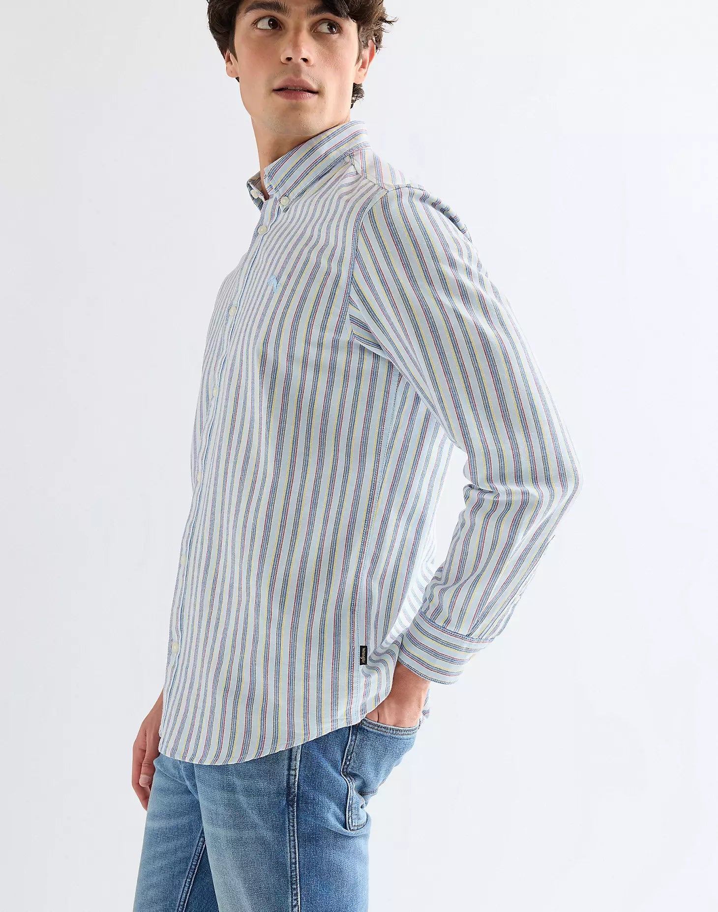 Elegancka i ponadczasowa koszula Oxford z długim rękawem i wzorem w paski została uszyta z miękkiej i przewiewnej bawełny, która zapewnia niezawodny komfort. Koszula Oxford z długim rękawem i wzorem w paski to stylowy dodatek do Twojej garderoby na dni robocze i weekendy. Bawełniany materiał jest miękki i komfortowy, a haftowany detal na klatce piersiowej dodaje całości charakterystycznego stylu Wrangler. Regularny krój - nie za ciasny i nie za luźny, by zapewniać maksymalny komfort. Ten model ma kołnierzyk zapinany na guziki, mankiety z guzikami do regulacji i zaokrąglony dół. Materiał wykorzystany w tym artykule jest produkowany w 100% z bawełny uprawianej w wybranych regionach Afryki, które statystycznie zużywają mniej nawozów i pestycydów niż konwencjonalne uprawy bawełny poza Afryką. Dane oparte na publikacji ICAC World Cotton Data Book.