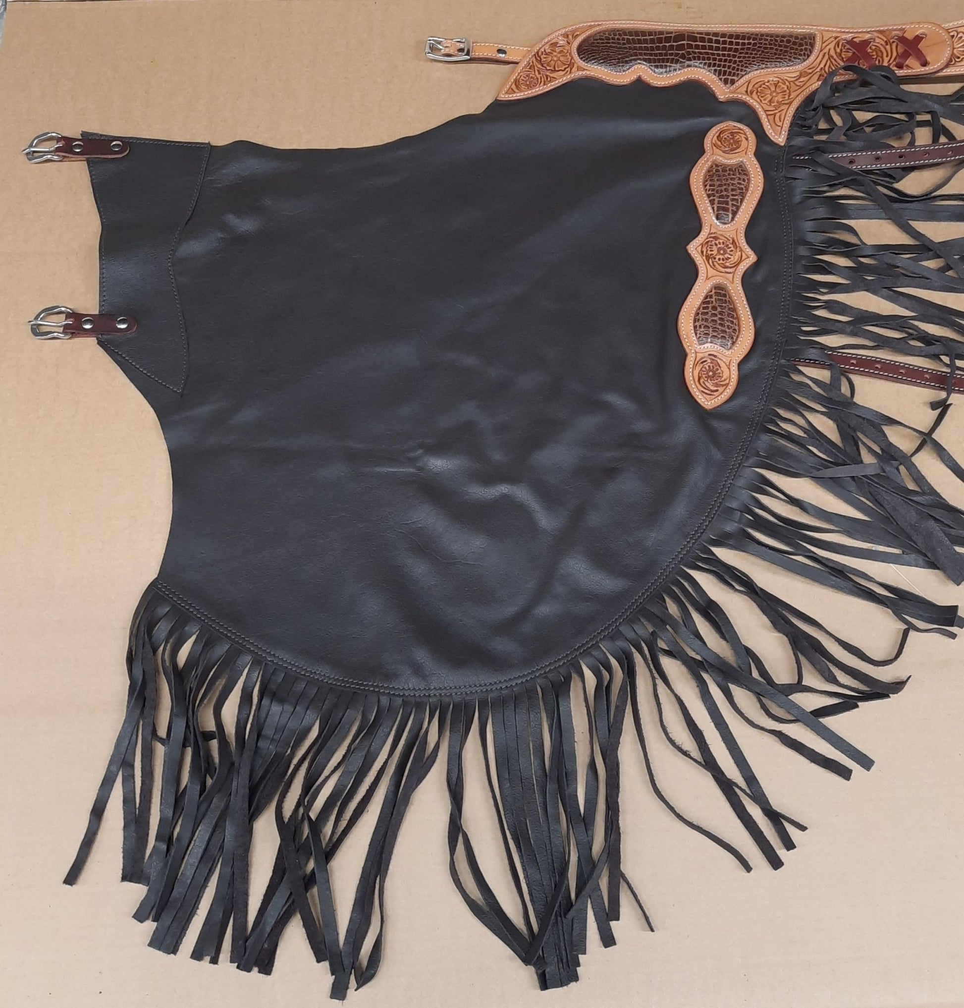 Stylowe chapsy typu chink wykonane z wysokiej jakości, gładkiej skóry w kolorze brązowym. To połączenie klasycznego rzemiosła i funkcjonalności, idealne zarówno do jazdy westernowej, jak i rekreacyjnej. Wykonane z naturalna gładkiej skóry bawoła oraz z detalami ze skóry krokodyla.
