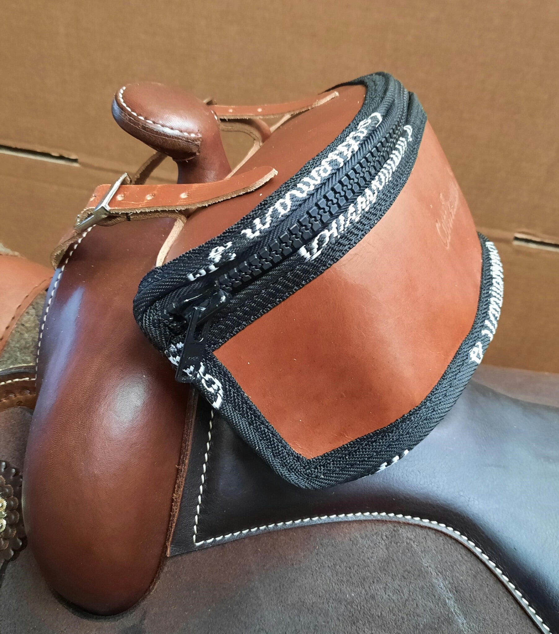 Sakwa na siodło wykonana ze skóry i mocnego płótna z elementami z siatki powietrznej