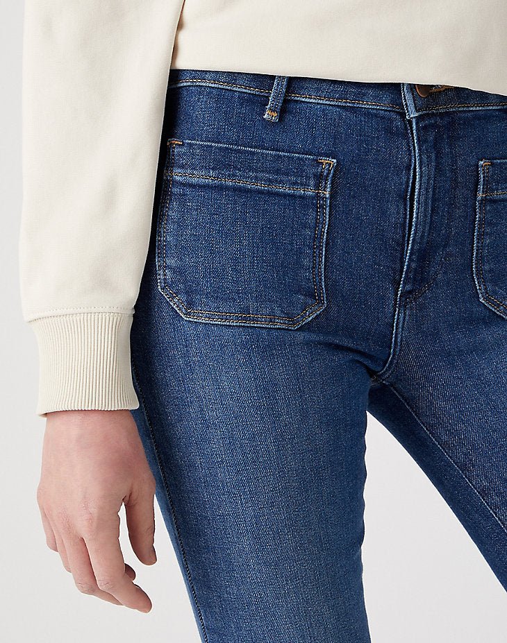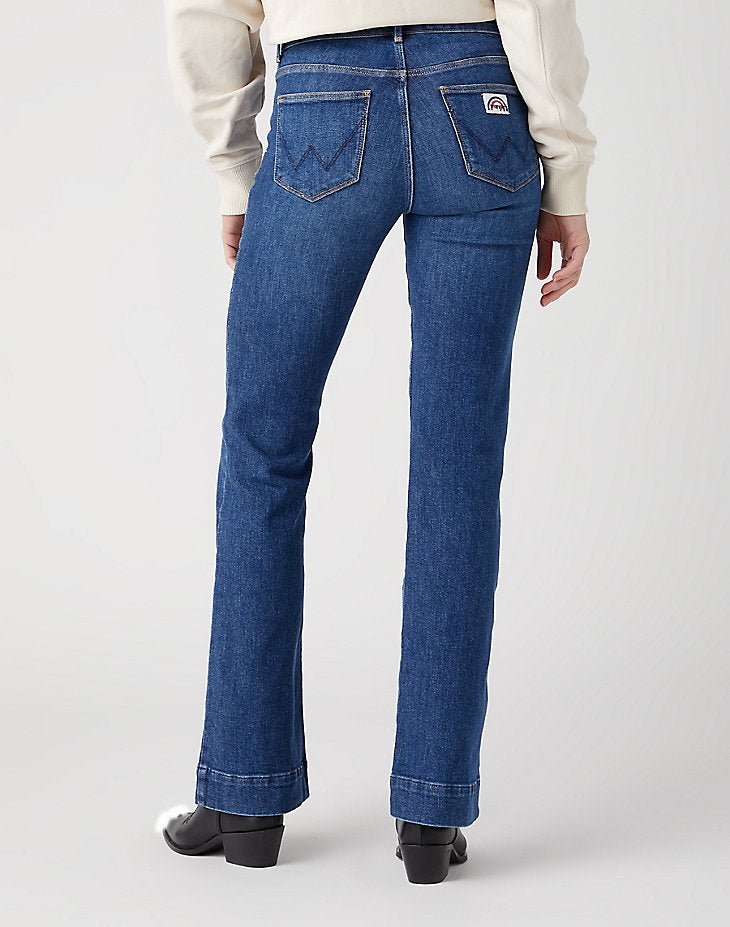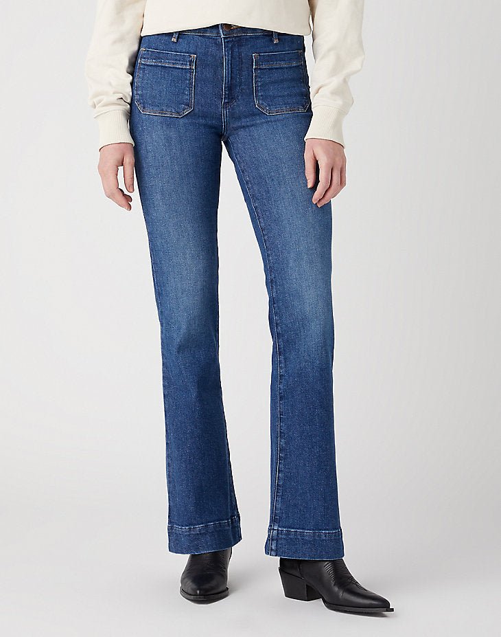 W tym sezonie dodaj do swojej garderoby akcent retro dzięki naszym flagowym jeansom Flare. Klasyczny niebieski denim o dużej rozciągliwości z przednimi naszywanymi kieszeniami.