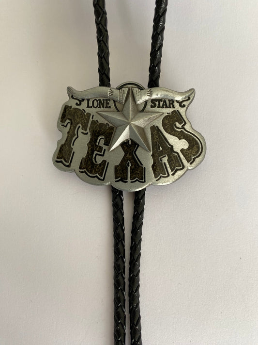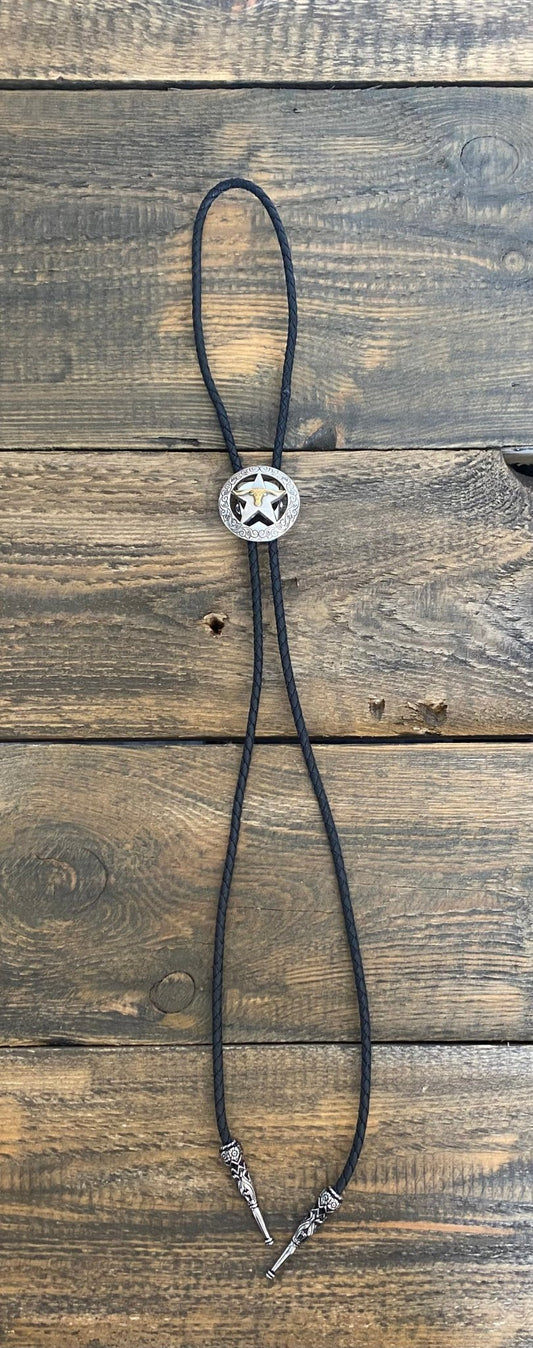 Bolo Tie Western Black Stone & Bronze Spiral Design