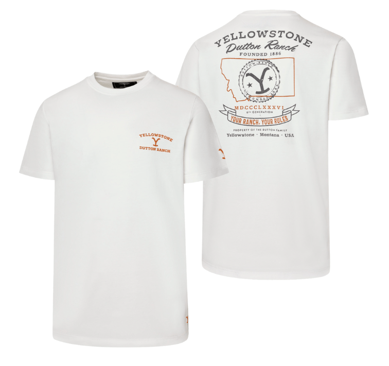 Koszulka unisex z okrągłym dekoltem, wykonana z wysokiej jakości bawełny. Udoskonalona subtelnym nadrukiem z logo Yellowstone na piersi i rękawie oraz wyrazistym, wysokiej jakości nadrukiem z tyłu. Stylowy, a zarazem swobodny element z aktualnej kolekcji Yellowstone – łatwy do łączenia i prawdziwy must-have w każdej garderobie. Nie tylko dla fanów rodziny Dutton, ale dla każdego, kto kocha autentyczny styl western z nowoczesnym akcentem..