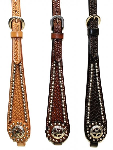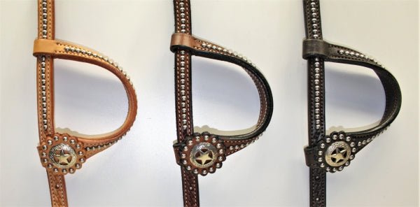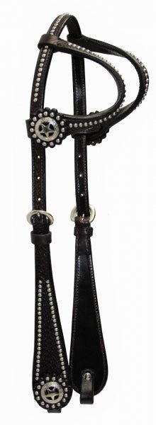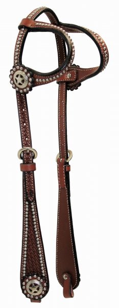 Skórzane ogłowie z klasycznym tłoczeniem basket, zdobnymi conchami, gwiazdą i dżetami